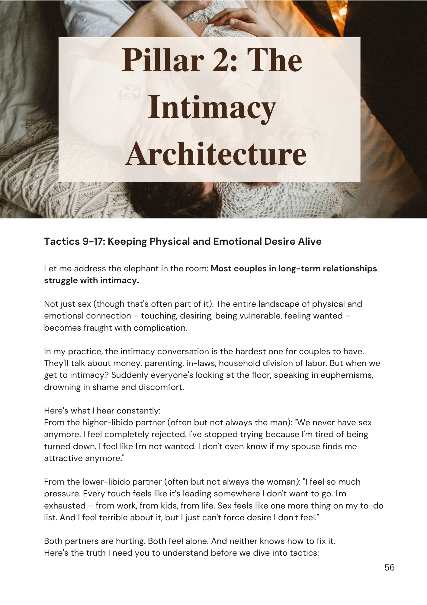 Physical intimacy that feels fun, spontaneous, and desired instead of like a chore (sex that brings you closer instead of creating pressure and resentment)